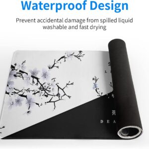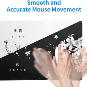 Black and White Japanese Cherry Blossom Gaming Mouse Pad Sakura Death Life Flower Mat 31.5×11.8 Inch Texture Non-Slip Rubber Base Mousepad Stitched Edges Keyboard Desk Pad for Office Home Game