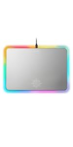The massive surface area supports your mic, keyboard, and mouse. The vibrant optical fiber edges gives an awesome light display while also providing enough surface area to accommodate all of your gaming accessories.