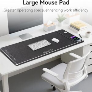 Wireless Charging Mouse Pad, 31.5″x11.7″ XXL Large Office Desk Pad with Ultra-Smooth Surface,Non-Slip Base, Classic Black Waterproof Computer Desk Mat for MacBook, PC, Laptop